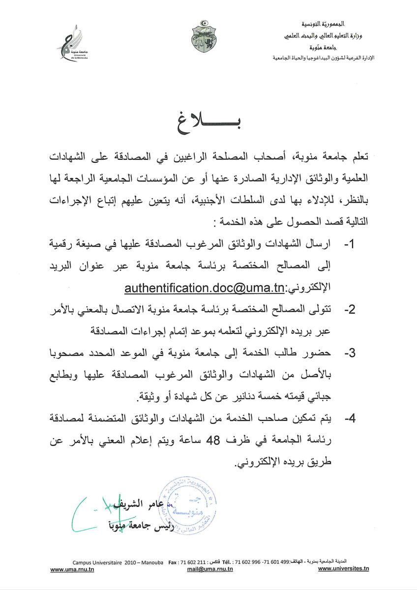 Procédure d’authentification administrative à l'université de la Manouba
