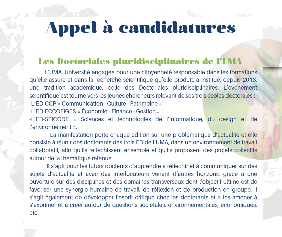 Appel à candidature pour les Doctoriales de l’UMA : À soumettre les candidatures avant le 30 juin 2025