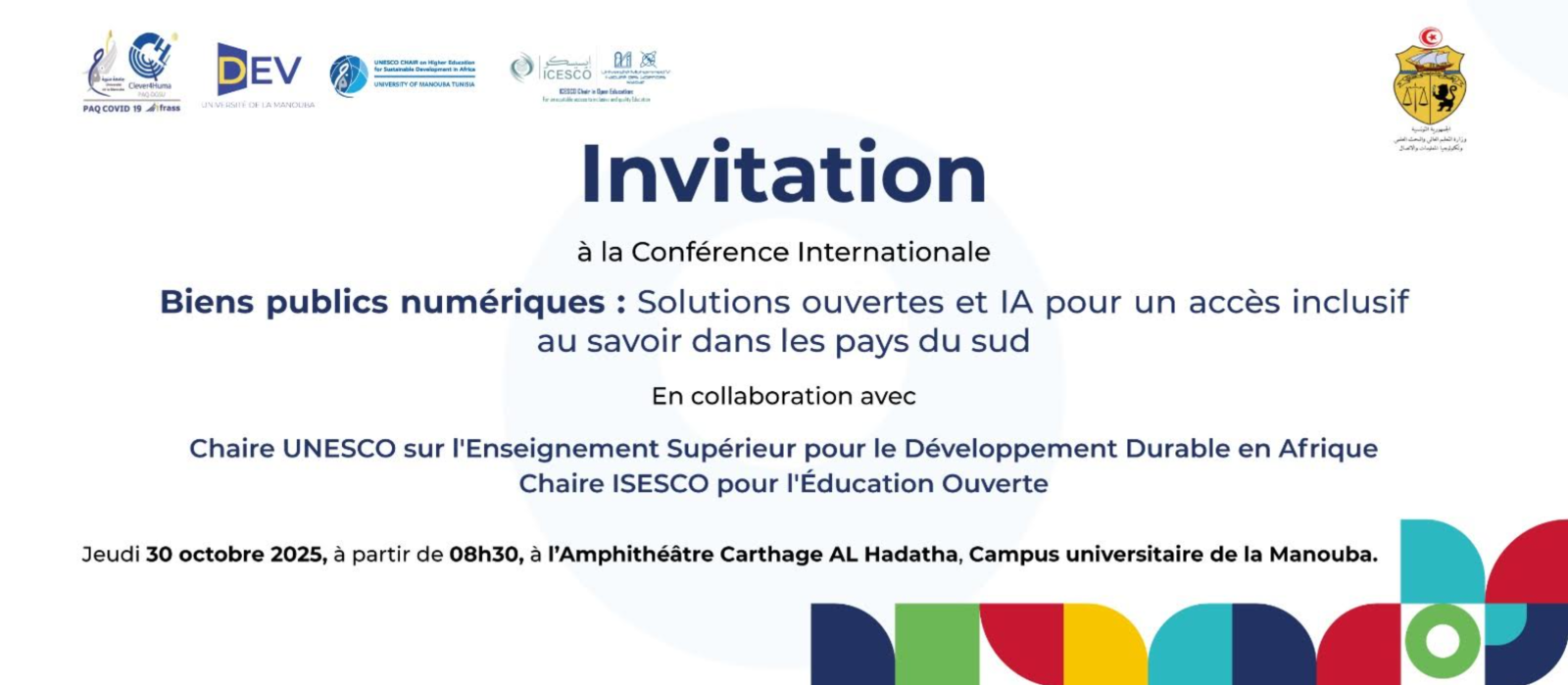 L’Université de La Manouba accueillera, les 30 et 31 octobre 2025, un événement international dédié aux Biens publics numériques :