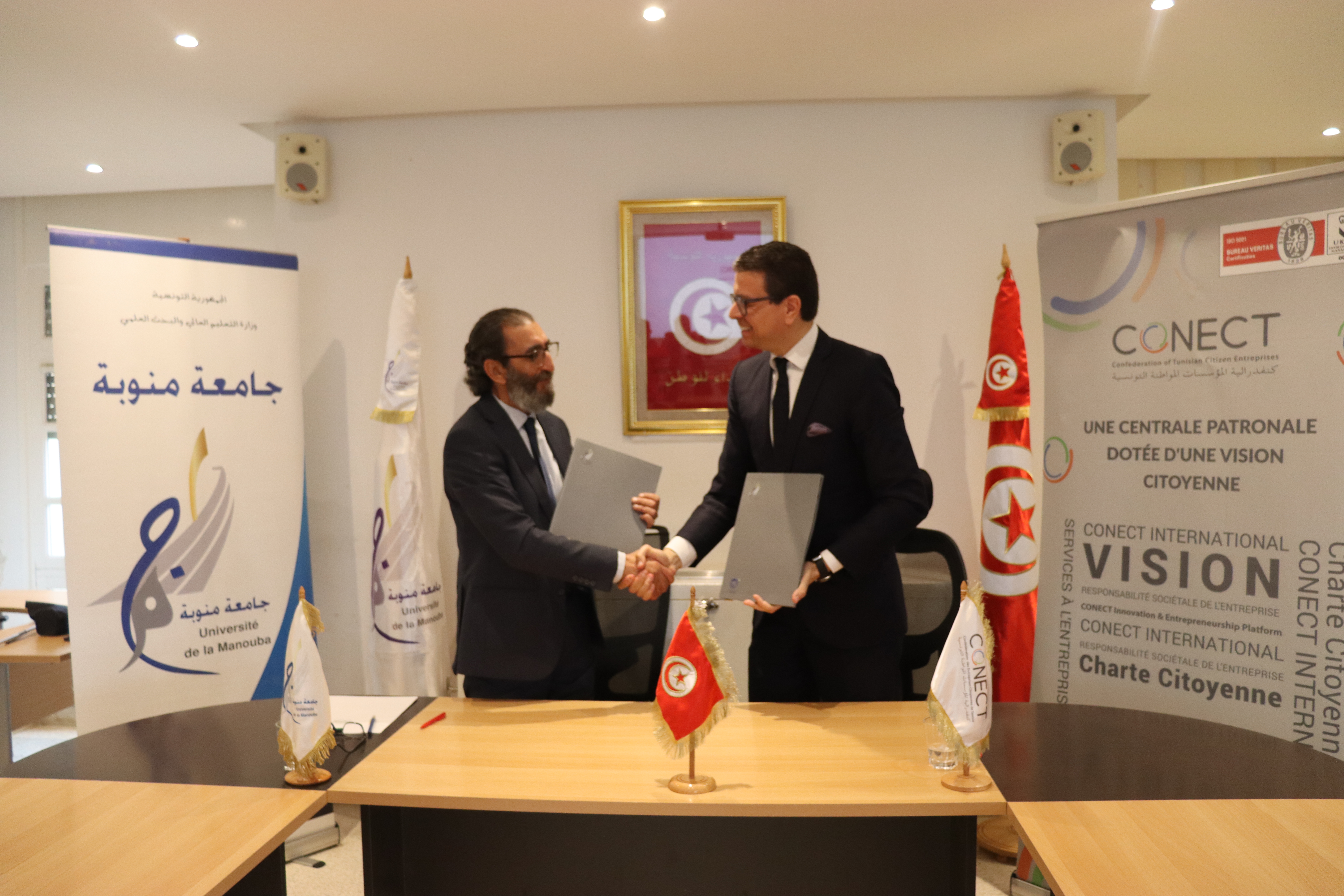Signature d’une convention stratégique entre l’Université de La Manouba (UMA) et la Confédération des Entreprises Citoyennes de Tunisie (CONECT) COMMUNIQUÉ (le 26/02/2025)