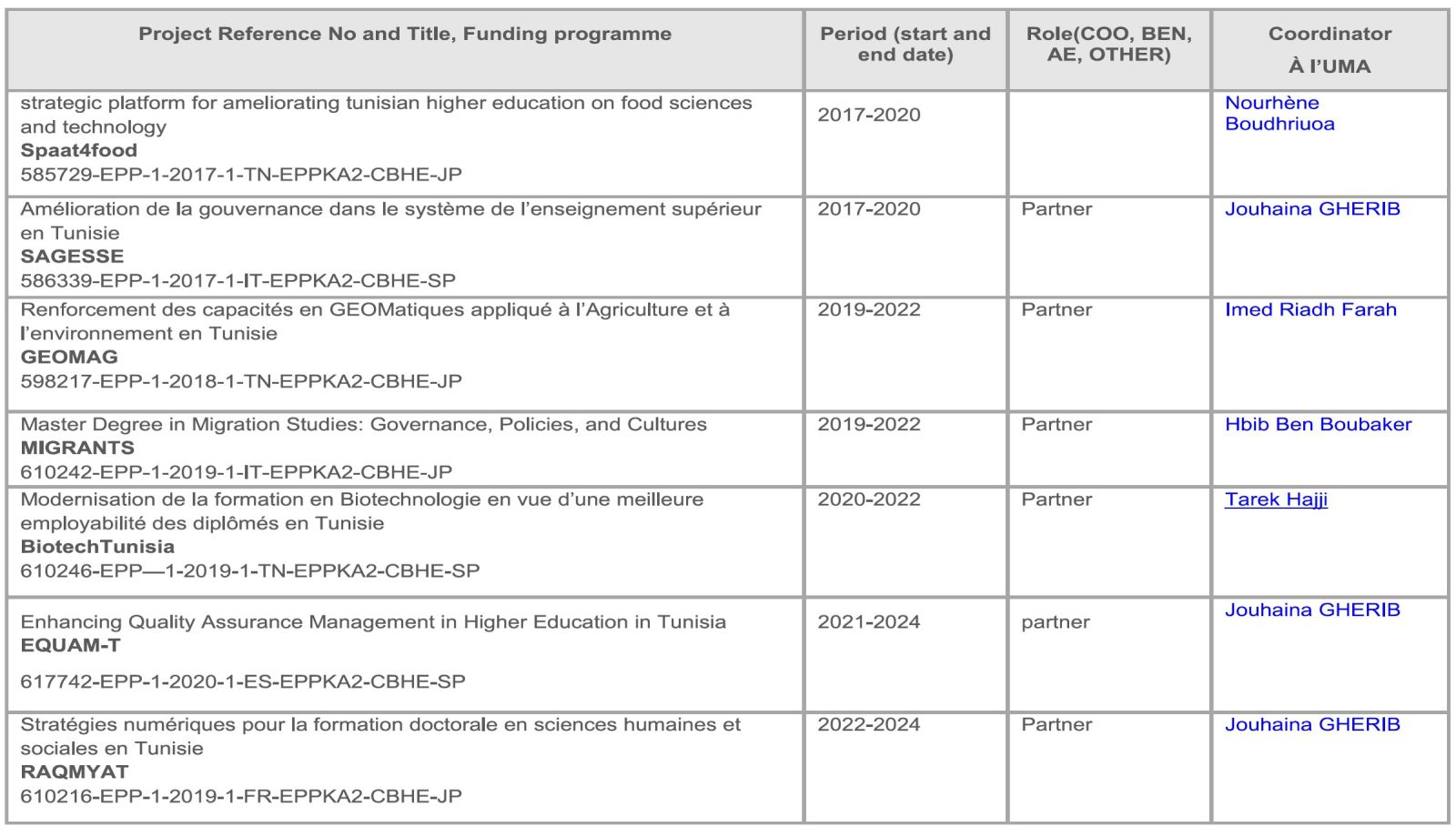 Projets de recherche
