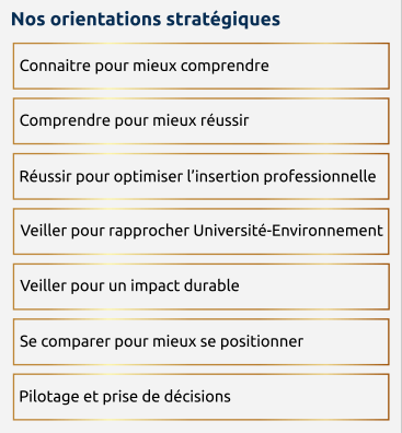• Suivre les étudiants depuis leur entrée à l’université jusqu’à leur insertion professionnelle.